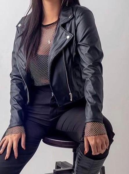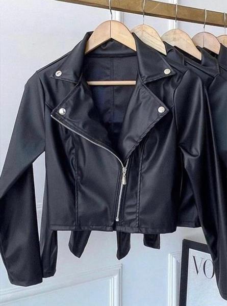 Jaqueta couro fake, tamanho G, cor preto com zíper.